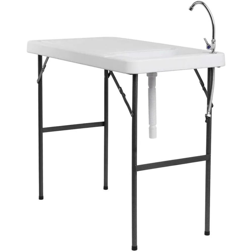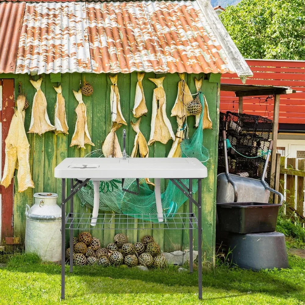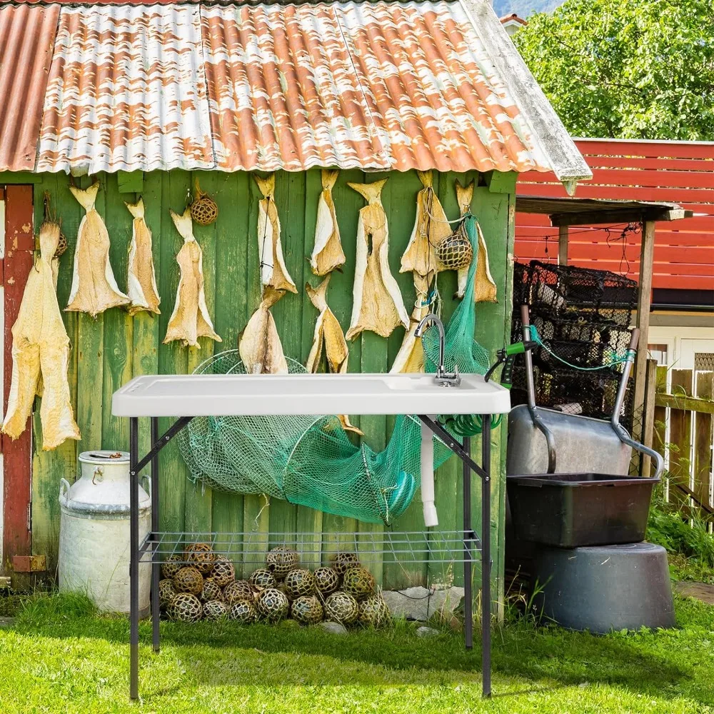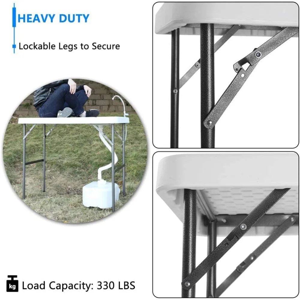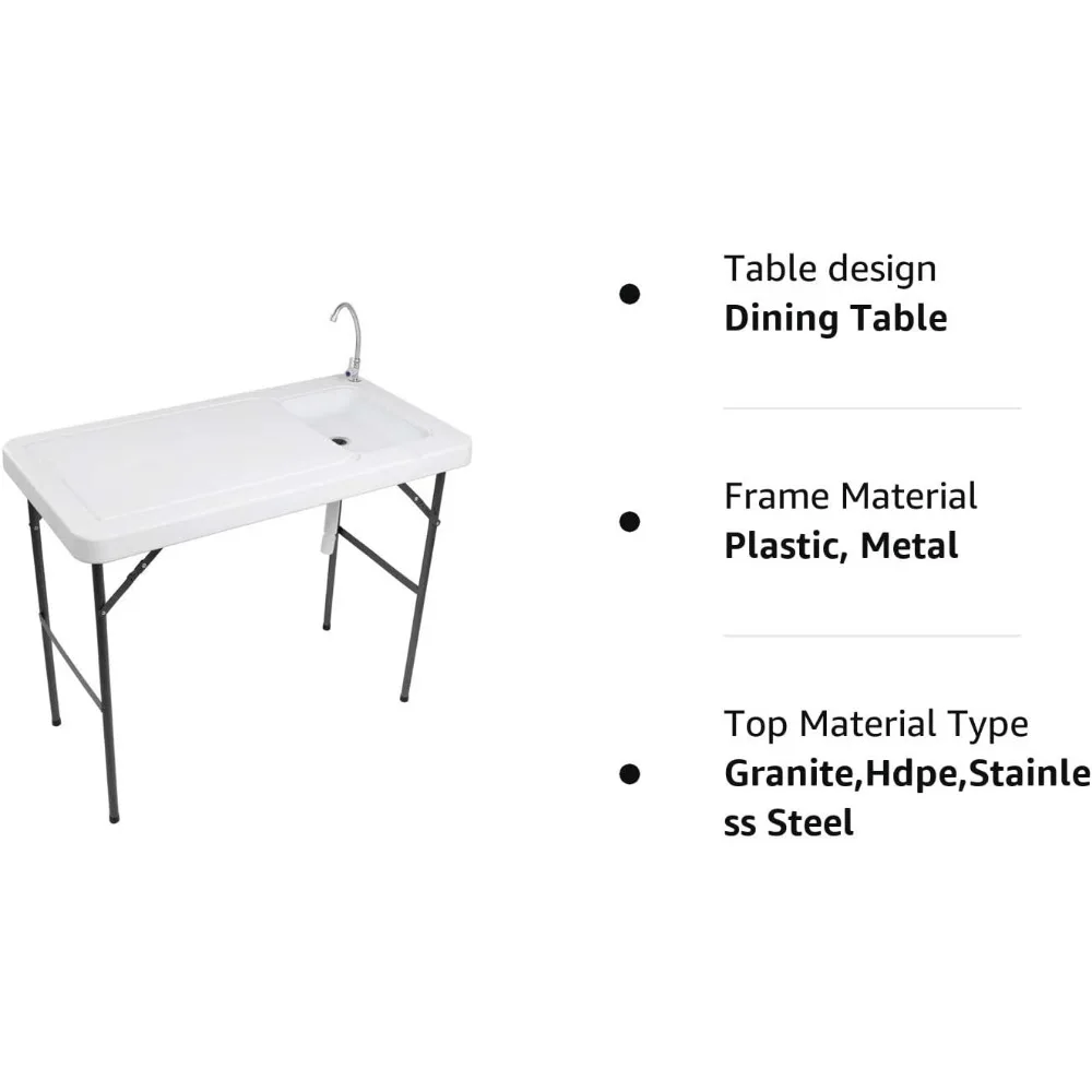 - ✔ MULTI-PURPOSE: Large camping table with faucet operation table and suitable height feature great comfort for various outdoor activities. A 3-way connector to connect the faucet with the spray nozzle and Standard garden connection offers more choices. Ideal for fish or food cutting and cleaning in outdoor camping, hunting or picnic etc.