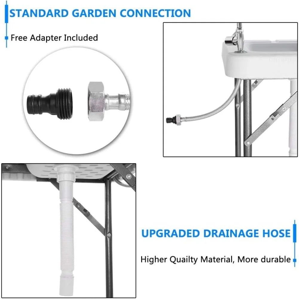 - ✔ PORTABLE: This portable sink for camping is folding design and removable faucet and drainage hose make transportation and storage more convenient. This product is appropriate for a variety of outdoor activities, including fishing, camping, having a picnic, having a backyard BBQ, and more