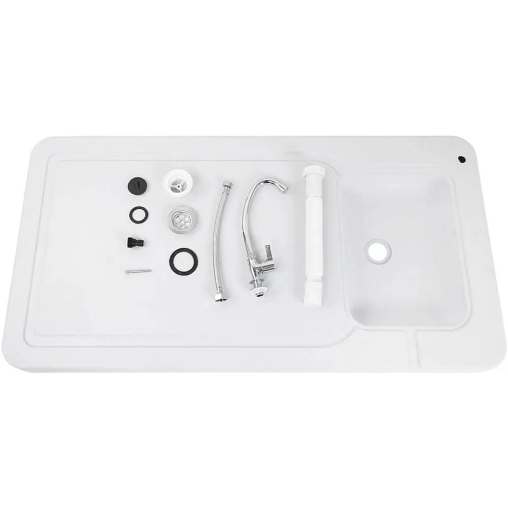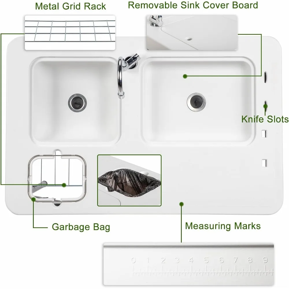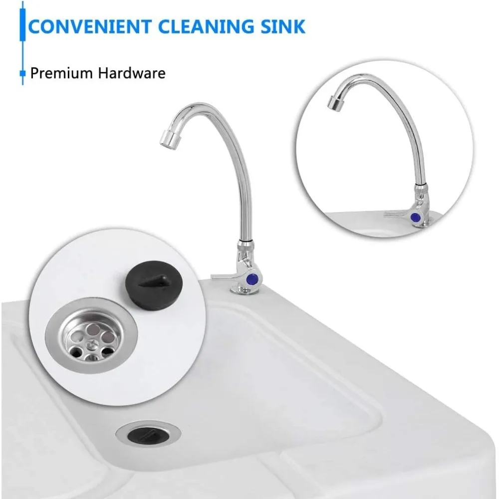 - ✔ PREMIUM QUALITY: Upgraded drainage hose takes high quality new plastic instead of recycled easy-cracked one for longer service life; blow-molded poly process features higher durability; HDPE tabletop and stainless steel faucet accompany your camp life longer