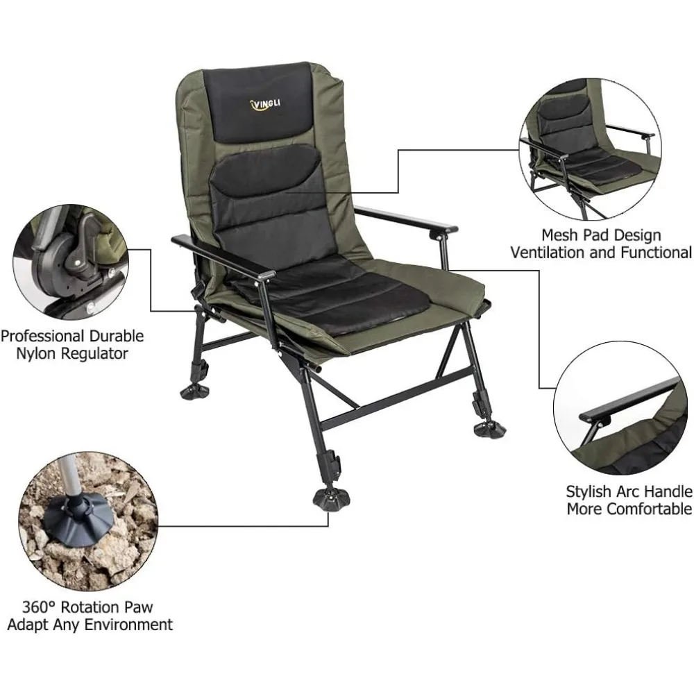 - 【ADJUSTABLE LEG & PAW】The chair differs from the others as it has back padding, sleek exterior look, and slope adjustable extending legs. It allows you to swivel feet on front legs keep chair from sinking in soft soil. From base camping to the beach, the Camping Chair is as well-rounded of a camp chair as they come.