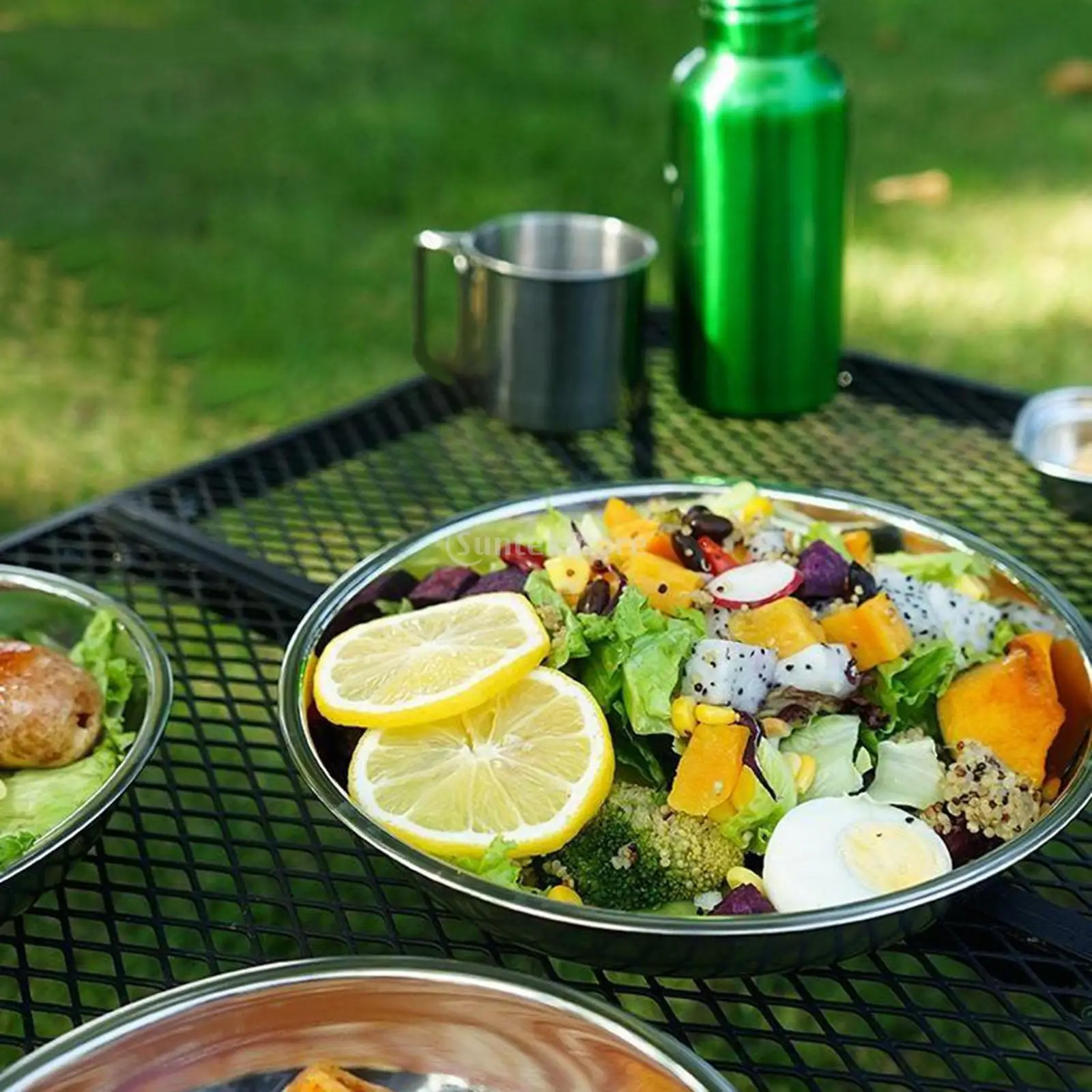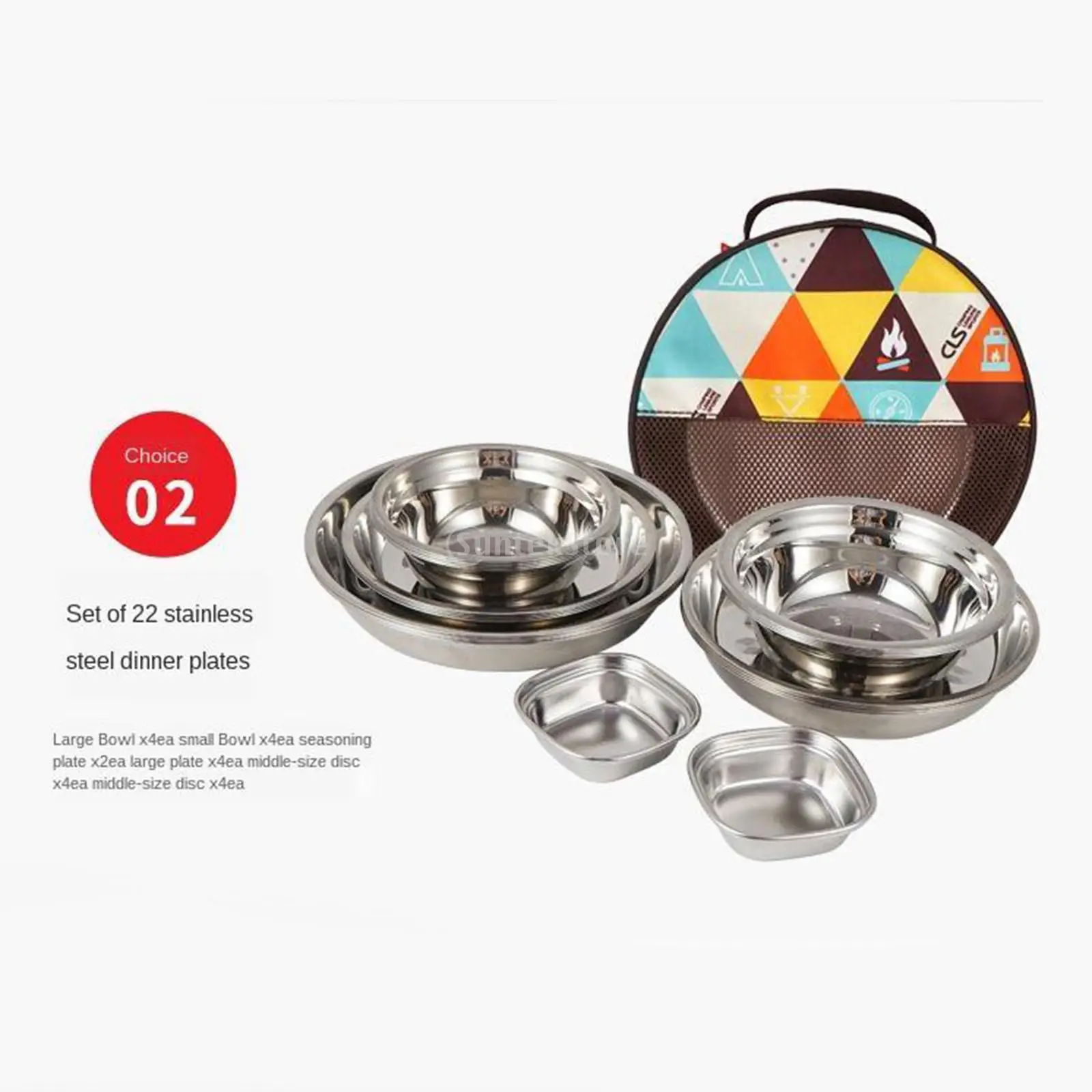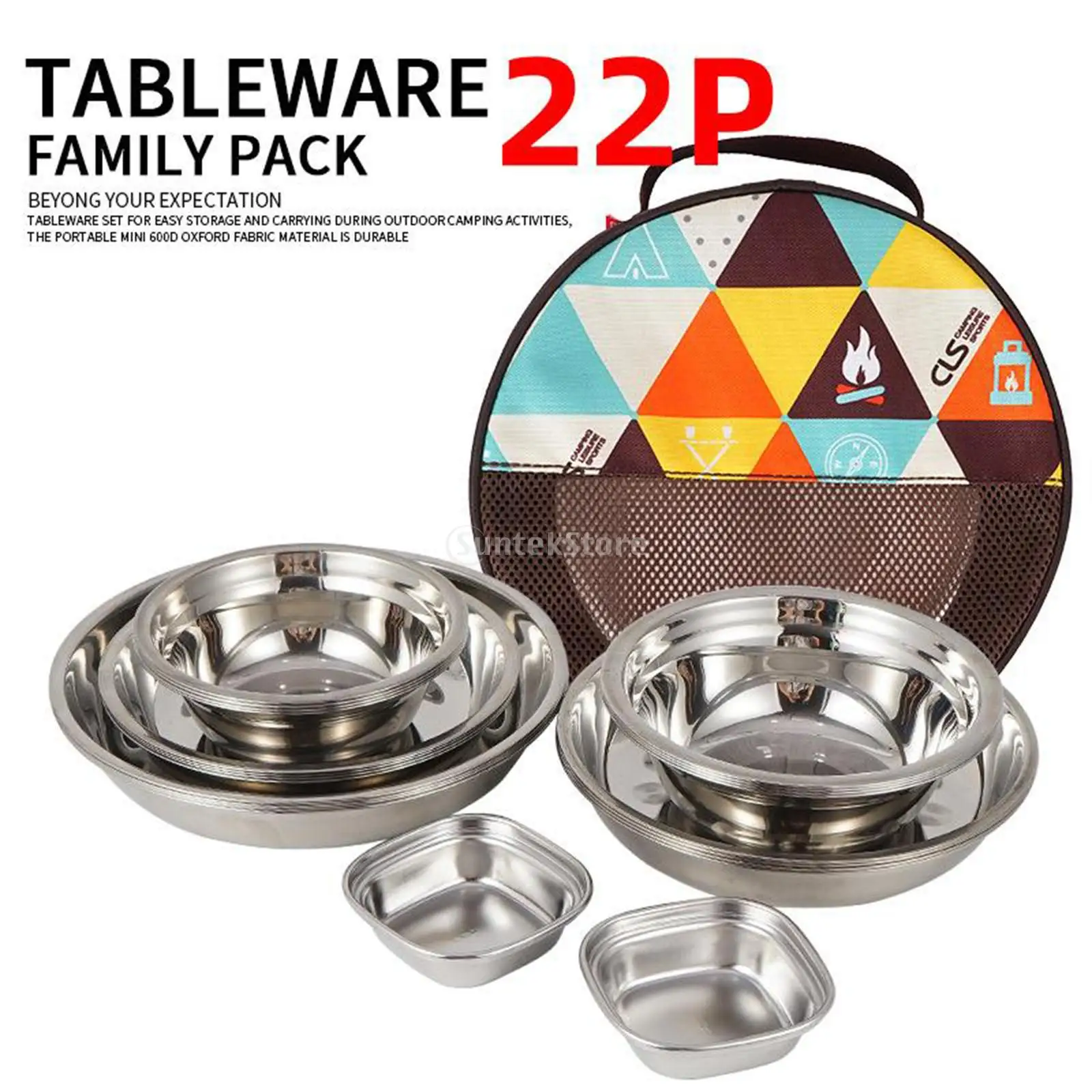 22Pcs/Set Camping Stainless Steel Dinner Dish Plate Durable Outdoor Picnic Tableware Salad Bowl Food Container Picnic Travel