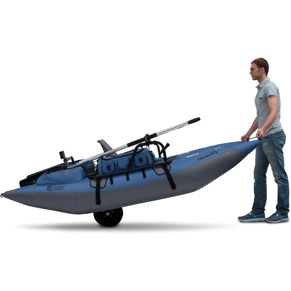 - Boat and oars disassemble into a compact size for convenient storage; transport wheel allows easy access to your favorite fishing spot